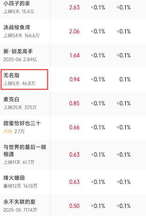 电影《无名指》想要在票房上实现赶超,在这个暑期档脱颖而出,估计是不可能的事情了。