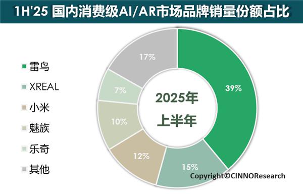 不仅如此,产品销量方面,数据显示雷鸟已经连续三年半在中国市场销量排名第一,2025 年 H1,雷鸟在中国 AR/AI 拍摄眼镜线上市场的份额更是高达 39%,以断崖式的优势领先;全球层面正如前文所言,雷鸟已经做到了全球第一。
