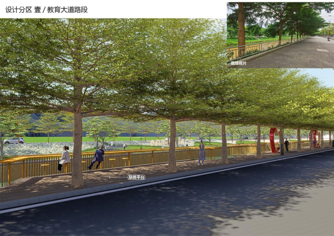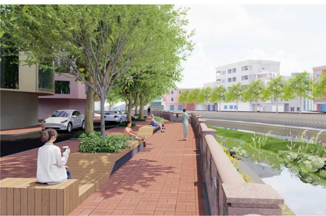 以教育大道路段为例,项目在提升现有人行道功能的同时,打造沿河步道与亲水栈桥系统。在确保安全的前提下,通过最大限度地将步道向河岸延伸,不仅让市民能够零距离感受滨水景观的魅力,更在城市与河流之间建立起紧密的生态纽带。