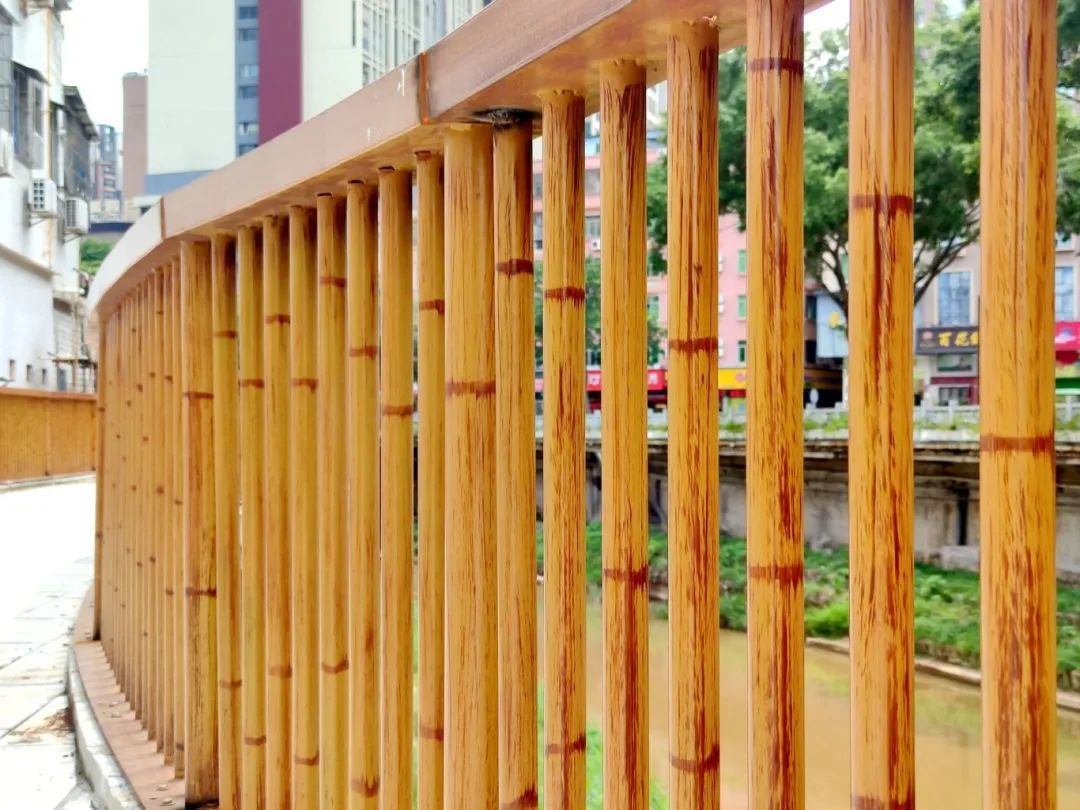 在沿河护栏设计上,采用仿竹纹镀锌钢材,既确保安全耐用,又巧妙彰显广宁“中国竹子之乡”的地域文化特色。同时,栈桥平台特别设置了多功能休闲坐凳,集休憩、观景、互动打卡于一体,大大提升了场地的停留吸引力,为市民创造更多社交互动可能。